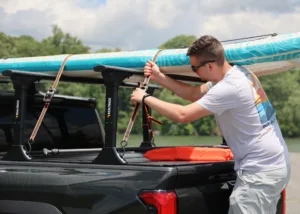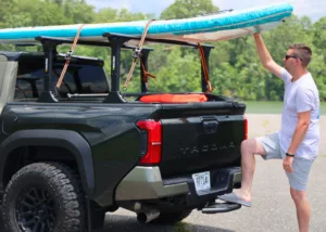 Modular bed rack system – Organize kayaks, paddleboards, or long gear like fishing rods separately from your other supplies.