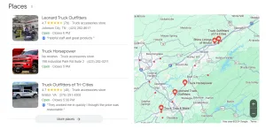 This means that if your truck accessory shop isn’t appearing in the Local 3-Pack, you could miss out on many potential customers. This visibility is essential for truck accessory shops that rely on local customers searching for products like truck bed covers, lift kits, overlanding gear, and more.