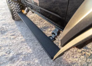 The Body Armor 4×4 E-Power Steps provide the perfect balance between high ground clearance and easy vehicle access, making them an excellent upgrade for lifted trucks and SUVs. Designed for off-road enthusiasts and daily drivers alike, these automatic steps deploy and retract smoothly with a dual-motor system, supporting up to 600 lbs per side. Their no-drill installation makes them easy to mount, while integrated LED lights enhance visibility in low-light conditions and add style. Built for durability, they feature an IP67 waterproof rating, ensuring protection against water and dust. With a sleek, low-profile design, these steps maintain ground clearance while offering a practical and stylish solution for effortless entry and exit.