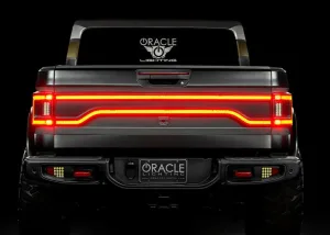 Oracle is taking taillight upgrades to the next level with the Racetrack Flush Style LED Tailgate Panel Light, the perfect complement to the flush mount taillights. Ideal for Jeep Gladiator JT owners, whether they’re off-roading or cruising in style, this tailgate light adds both functionality and flair. It acts as a brakelight, taillight, and integrated turn signals, with dynamic motion turn signals that offer a modern touch. The durable, bright LEDs ensure better visibility on the road and the trail, while the seamless integration with the flush mount taillights creates a sleek, cohesive look. Installation is quick and easy, usually taking under an hour with the plug-and-play setup that requires no additional modifications. This upgrade delivers not only enhanced safety and visibility but also a bold, custom appearance, making it a standout choice for those looking to elevate their vehicle’s style and functionality.
